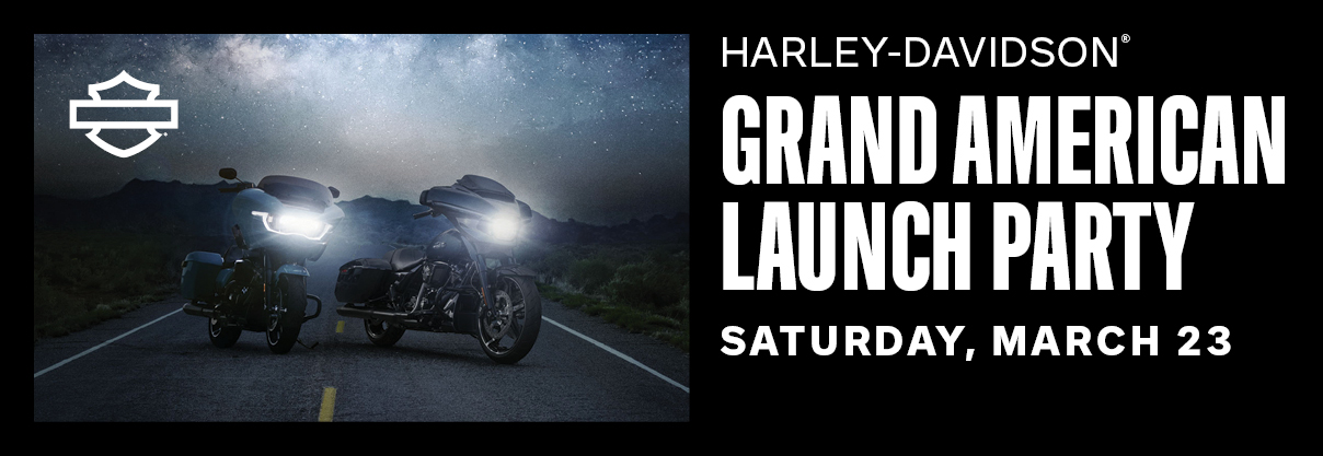 Join us to celebrate two re-imagined legends - the all-new 2024 Road Glide® and Street Glide® at our Grand American Launch Party on Saturday, March 23. Join fellow riders and enthusiasts to experience all that's new and gear up for an unforgettable riding season.